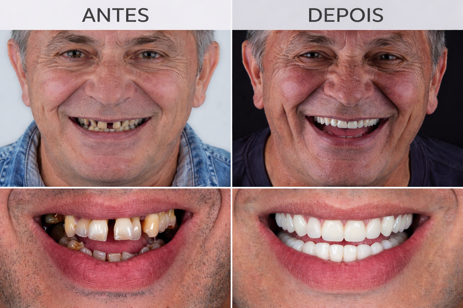 Reposição de dentes com estabilidade, estética e recuperação da função mastigatória.